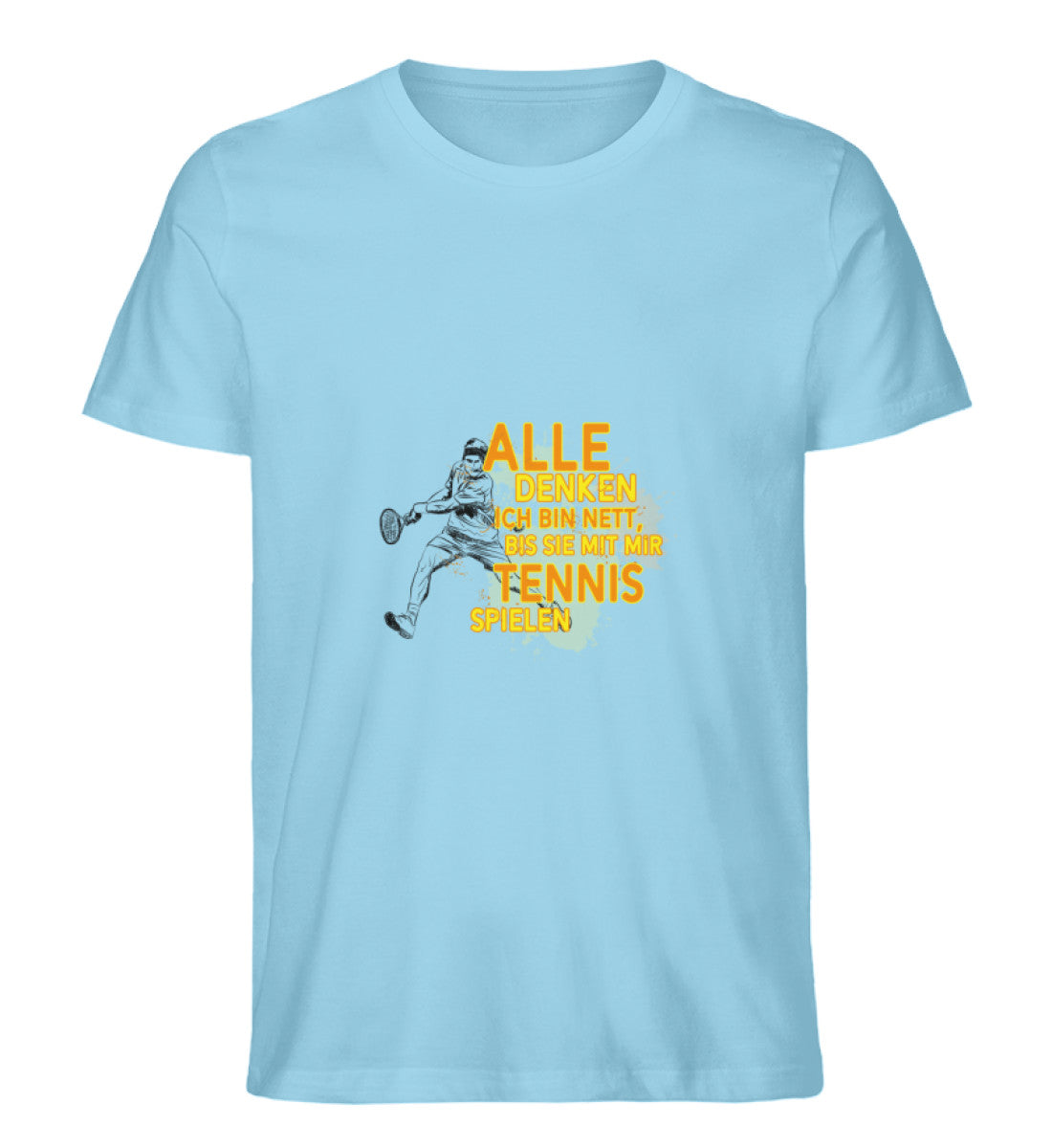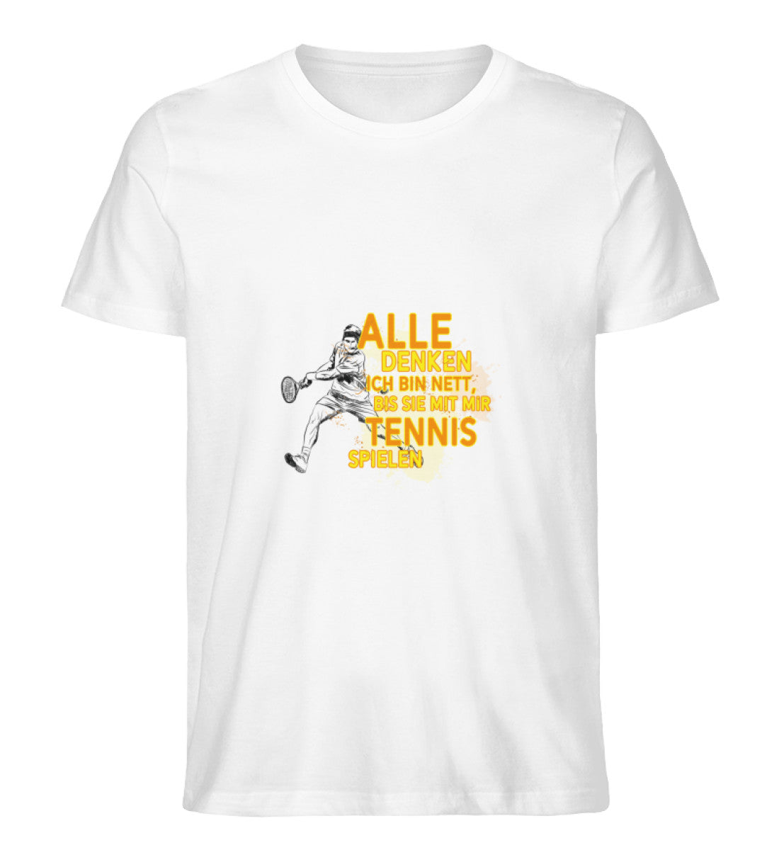 Tauche ein in die Welt des Tennis mit unserem exklusiven Herren T-Shirt: "Alle glauben ich bin nett, bis sie mit mir Tennis spielen." Dieses stylische und bequeme T-Shirt ist nicht nur ein Ausdruck deines einzigartigen Humors, sondern auch eine Hommage an deine leidenschaftliche Hingabe zum Tennissport.
