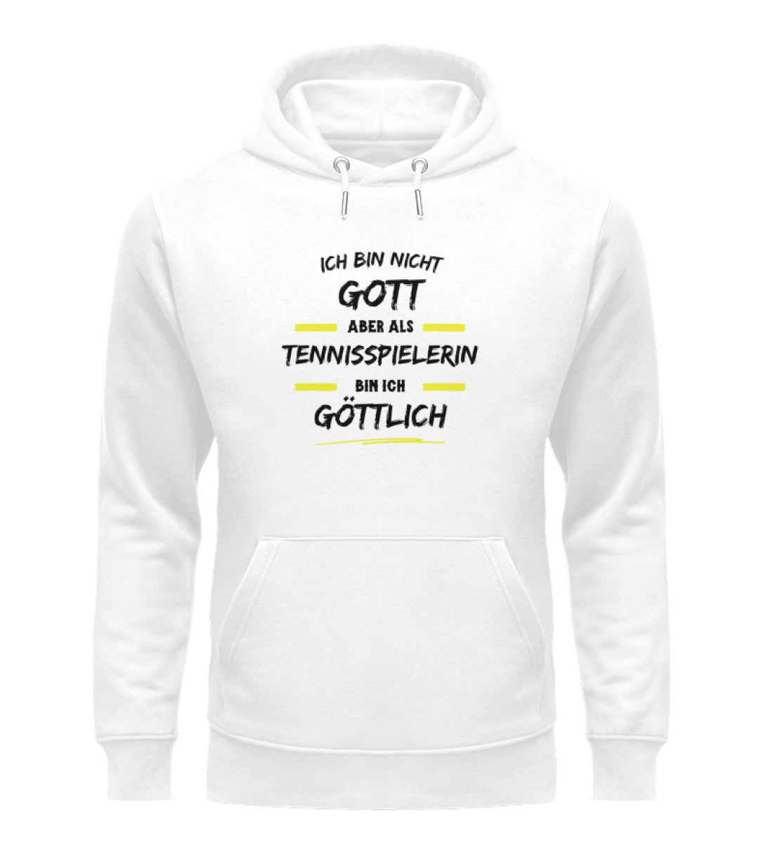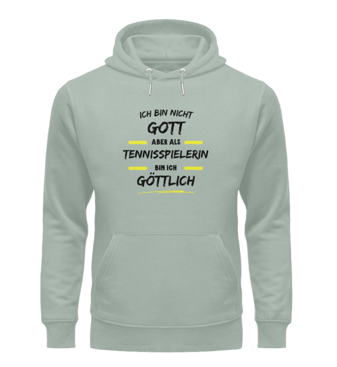 Tauche ein in den göttlichen Spirit des Tennis mit unserem exklusiven Hoodie! Mit der markanten Aufschrift "Ich bin nicht Gott, aber als Tennisspieler bin ich göttlich" verleiht dieser Hoodie deinem Spiel eine spielerische, humorvolle Note. Hergestellt aus hochwertigen Materialien bietet er nicht nur Komfort, sondern auch einen coolen Style, der dich auf und neben dem Platz auszeichnet. Zeige deine Liebe zum Tennis und hol dir noch heute diesen Hoodie, der dich wie ein göttlicher Spieler fühlen lässt! 🎾✨