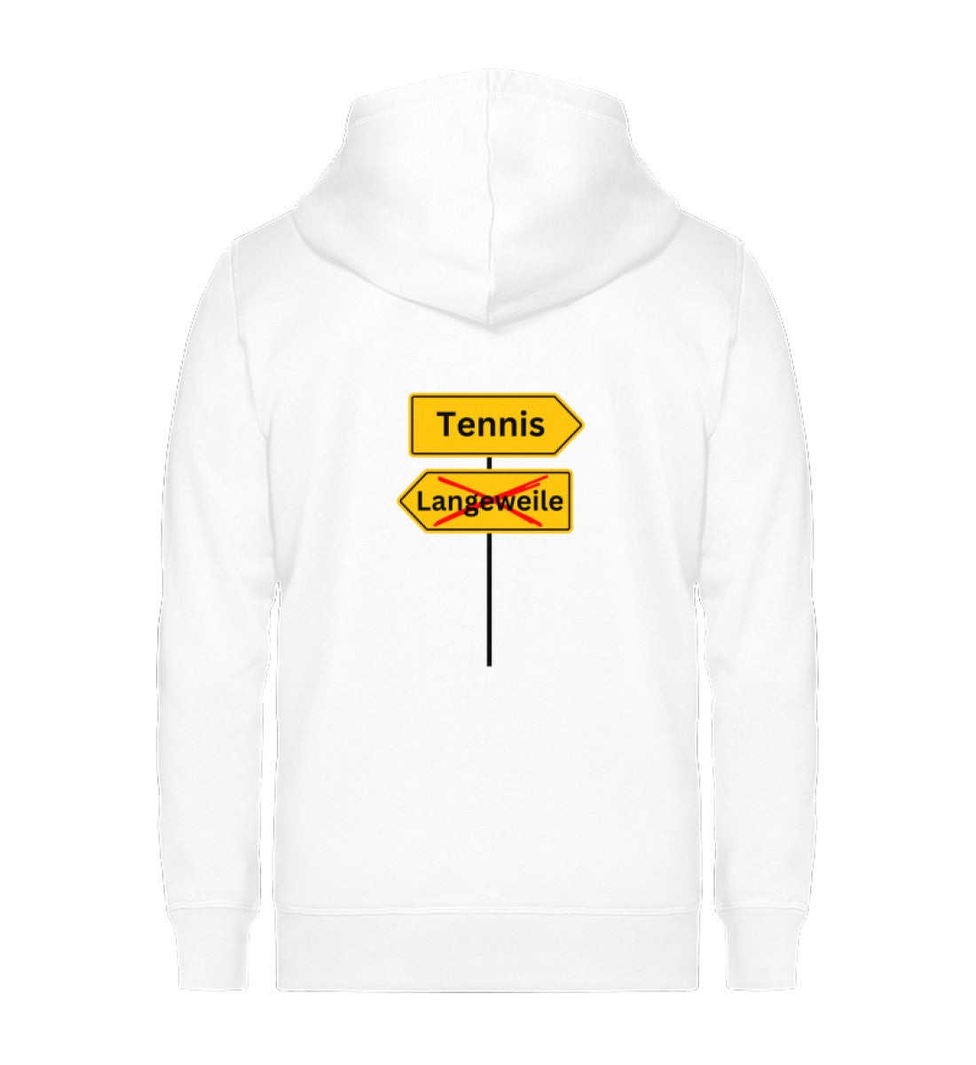 Präsentiere dein sportliches Flair mit unserer einzigartigen Sweatjacke für Tennisliebhaber! Diese Sweatjacke ist mehr als nur ein Kleidungsstück - sie ist eine Botschaft. Das Motiv zeigt zwei Richtungsweiser: Einer, der in Richtung Langeweile zeigt, ist durchgestrichen, während der andere voller Energie und Dynamik in Richtung Tennis zeigt.
